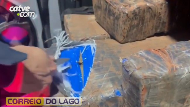 Durante a vistoria no interior do veículo, foi constatada grande quantidade de maconha, que após a pesagem, totalizou 503 kg.