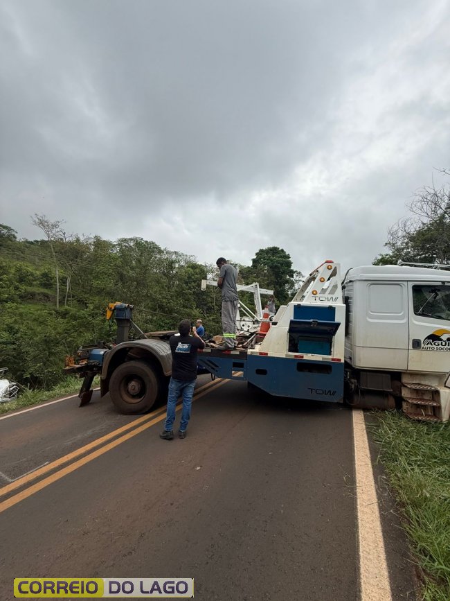 Trânsito é normalizado na PR-488 após retirada de caminhão em Diamante do Oeste
