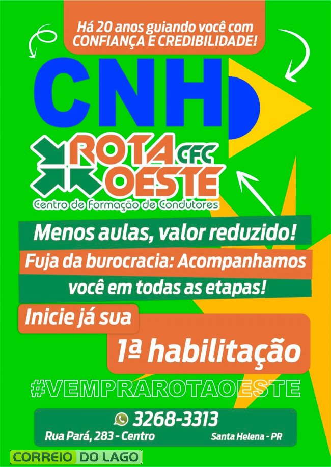 As inscrições já estão abertas para a próxima turma, com início no dia 6 de abril. Interessados podem procurar o CFC Rota Oeste e garantir a vaga antecipadamente.