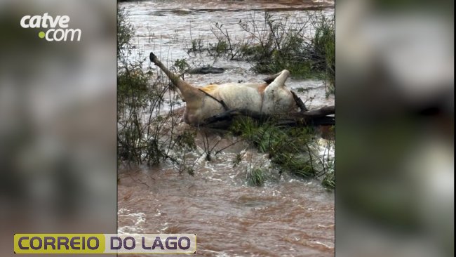 Segundo relatos, o animal estava com as patas para cima e já em estado de decomposição.