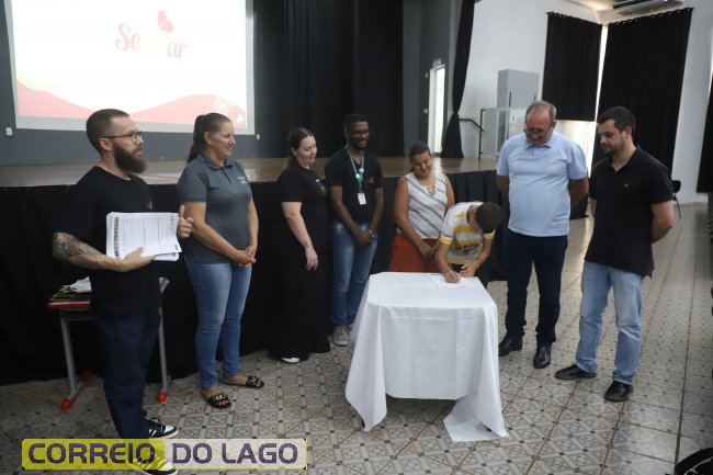 Na programação do evento, as autoridades se pronunciaram dando as boas-vindas aos jovens aprendizes e em seguida a equipe técnica da Semear coordenou os trabalhos com a assinatura dos contratos e entrevistas com os familiares.