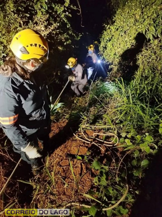 Momentos em que o corpo era retirado de onde havia sido semienterrado (foto: Silvano Amorim/Bombeiros San Alberto- Py)