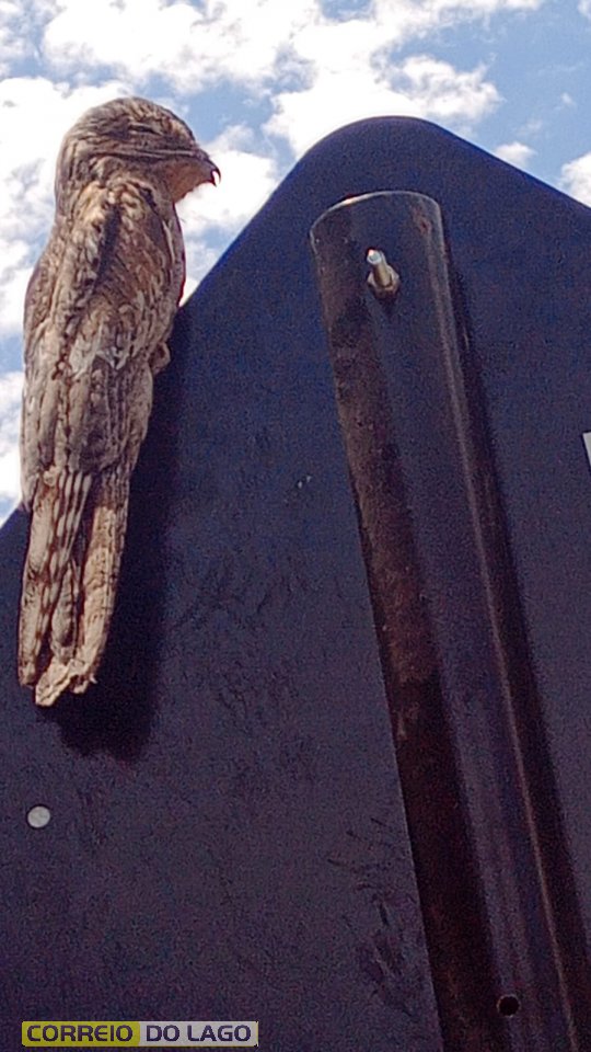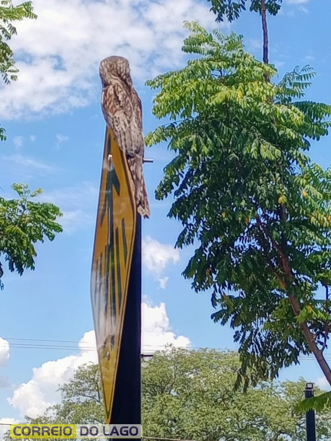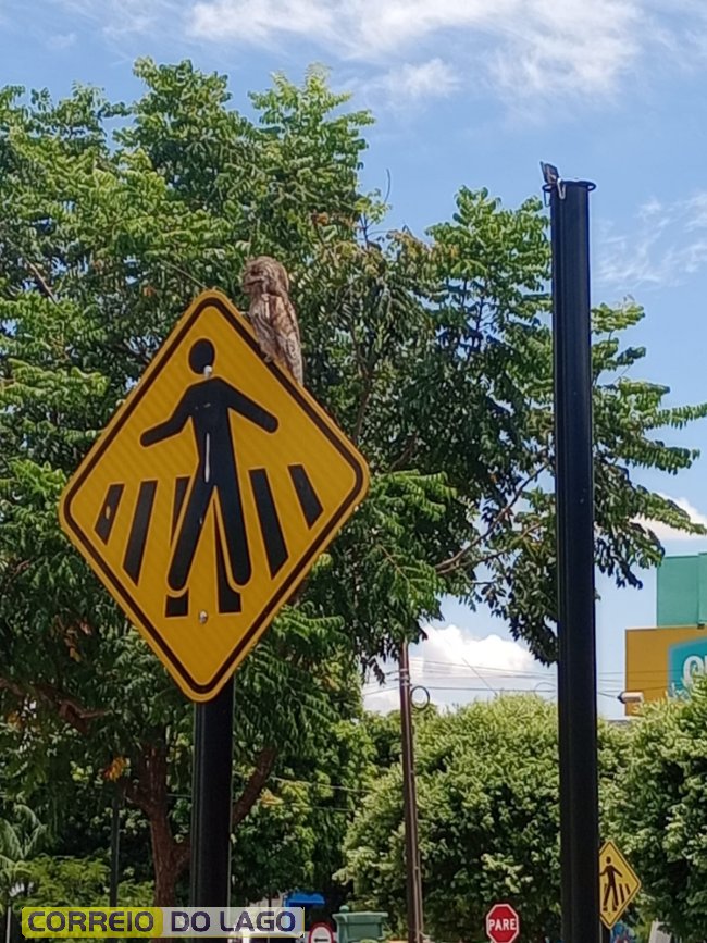 No início da tarde desta quarta-feira (28), uma cena curiosa chamou a atenção de quem passava pela Praça do Colono, em Santa Helena. Uma leitora do Correio do Lago compartilhou imagens de um urutau pousado calmamente sobre uma placa de sinalização, em pleno espaço urbano. Inicialmente confundido com uma coruja, o animal permaneceu imóvel por alguns minutos, observando o movimento ao redor sem se incomodar com a presença das pessoas.