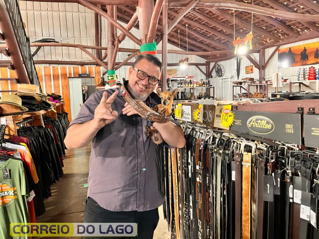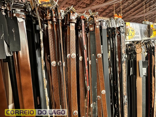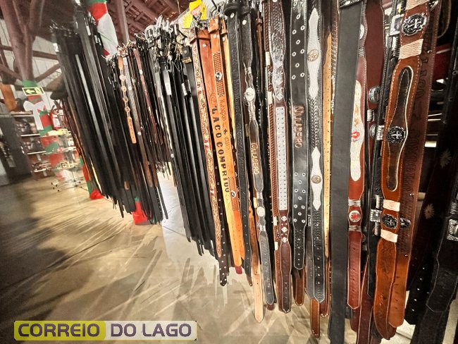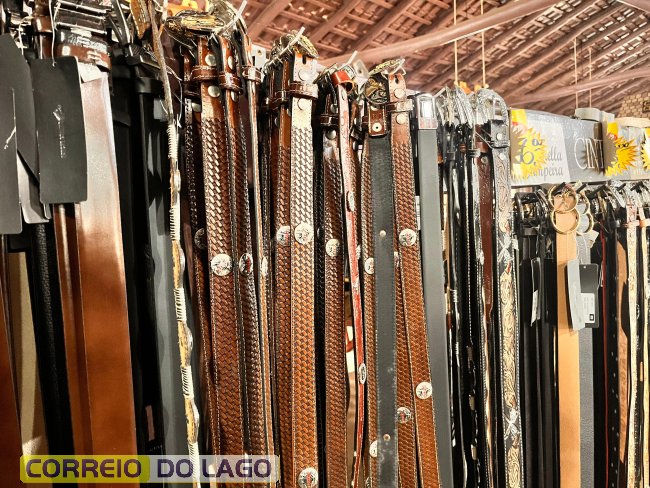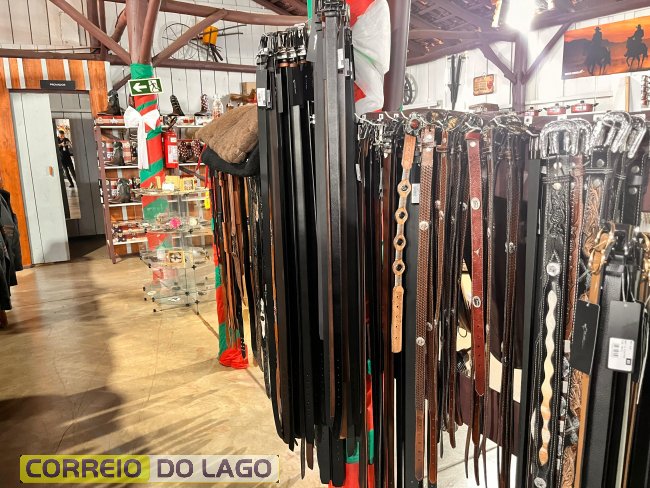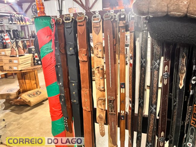 Variedade e qualidade em cintos de couro ganham destaque em apresentação no Rancho Crioulo, em Santa Helena