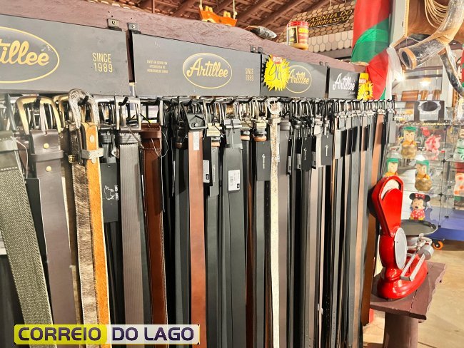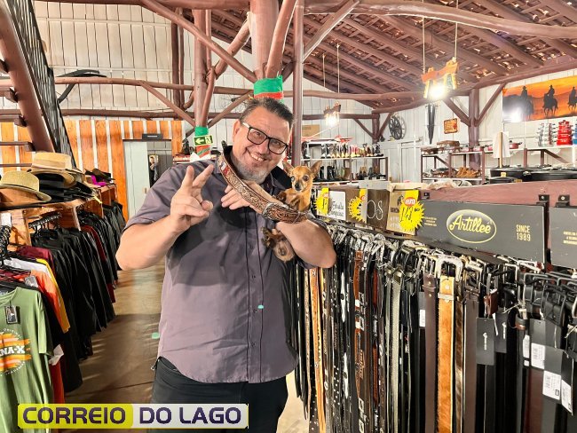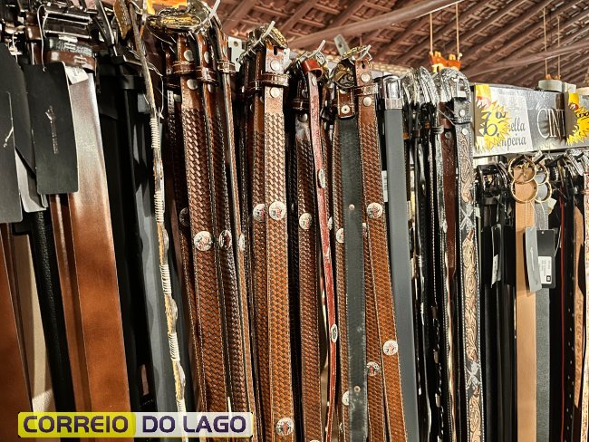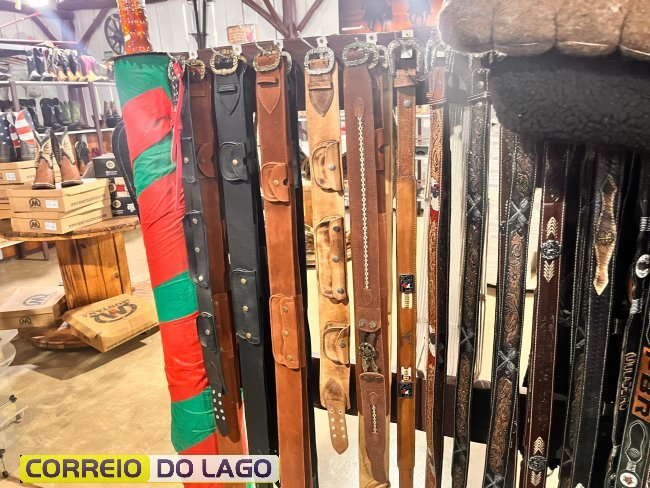 Variedade e qualidade em cintos de couro ganham destaque em apresentação no Rancho Crioulo, em Santa Helena