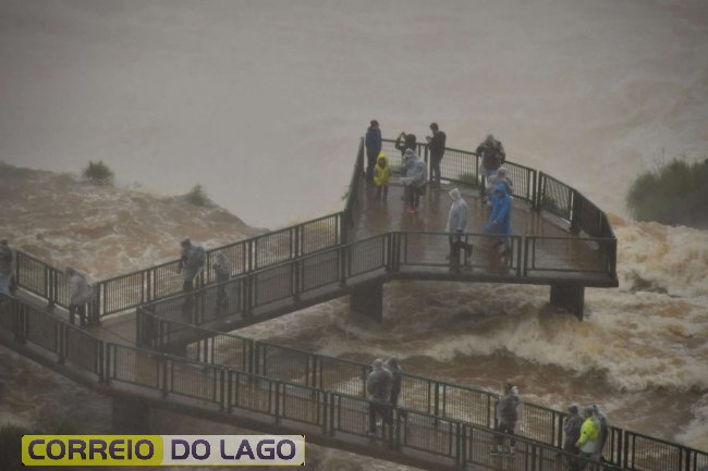 A vazão nas Cataratas neste momento, às 10h15 desta quinta-feira (26), está acima de 2,2 milhões de água por segundo, mais de um terço acima do normal, que é de 1,5 milhão de litros por segundo.