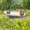 Veículo capota e para com as rodas para cima na PR-317 em Santa Helena