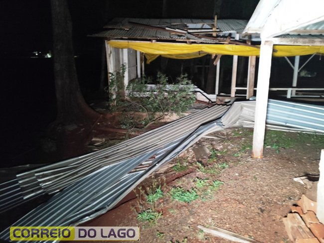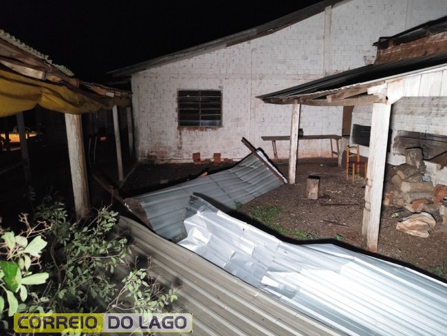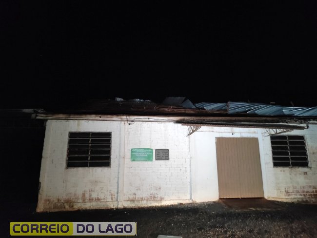 Um vendaval rápido, com duração de cerca de 15 segundos, provocou estragos no clube da Linha Pietrowski e na cancha de bocha, no interior de Nova Santa Rosa, na noite deste sábado (20).