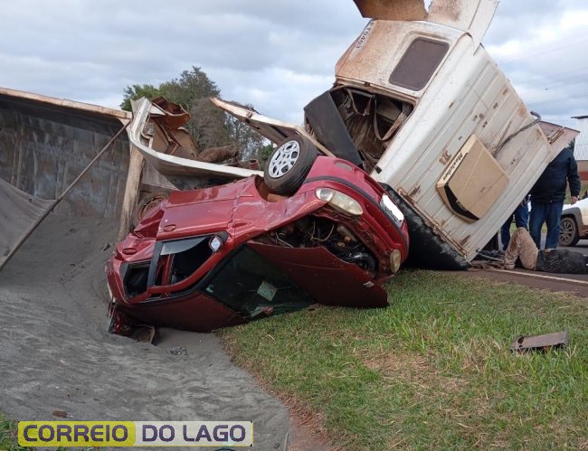 Um grave acidente envolvendo um caminhão e um carro foi registrado na tarde desta quinta-feira (17), na BR-277, em São Miguel do Iguaçu.