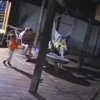 A mulher foi atingida no braço e no tórax. Ainda segundo as imagens, ela se levanta assustada, o filho corre e a abraça.
