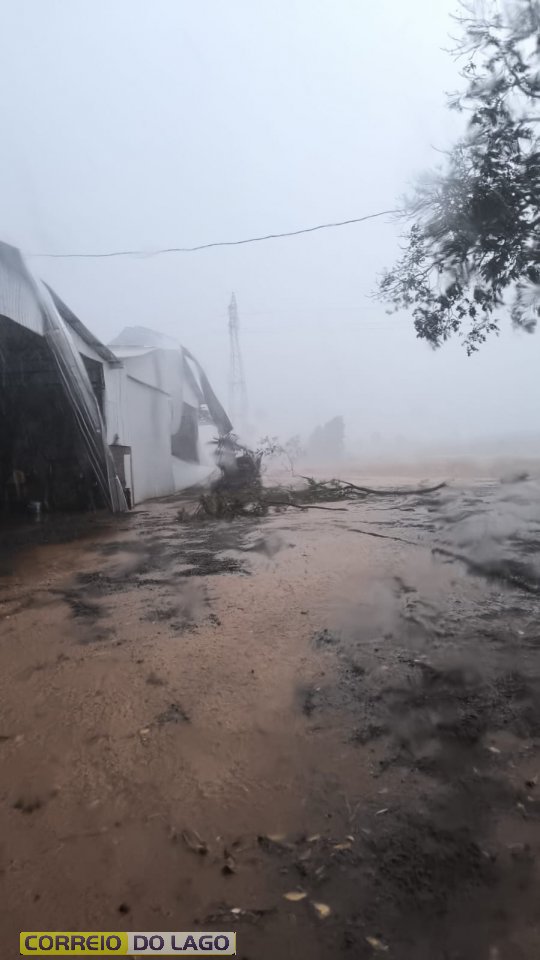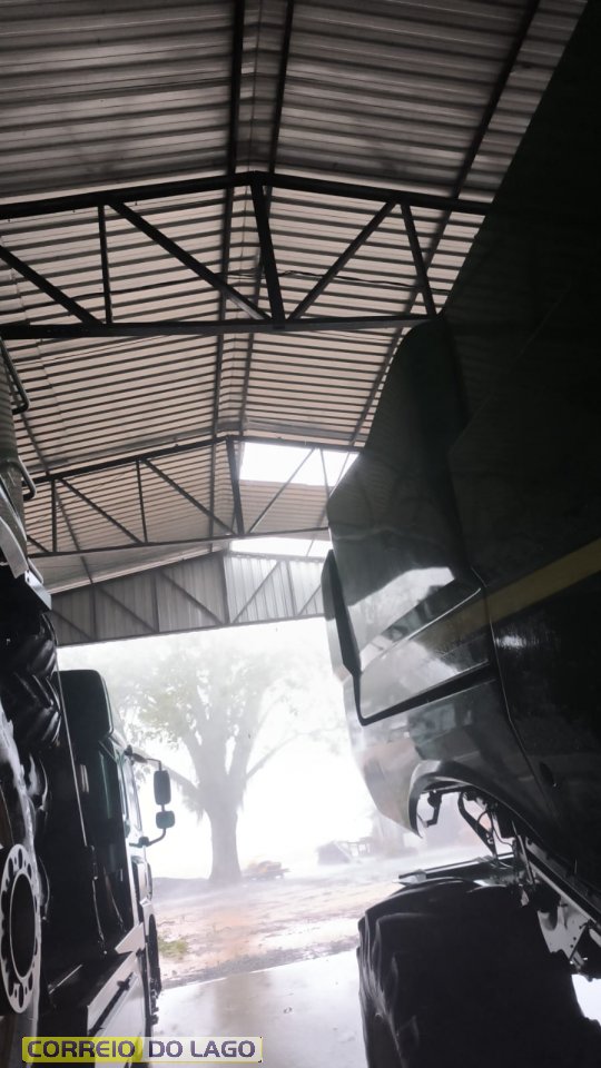 De acordo com o relato, os danos foram exclusivamente materiais. Os barracões utilizados para armazenar maquinário agrícola e caminhões foram parcialmente destelhados, e diversos galhos de árvores foram arrancados pela força do vento.