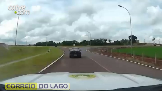 O vídeo mostra o automóvel em zigue-zague na via, trafegando pela contramão e desviando de outros veículos que seguiam pela via.