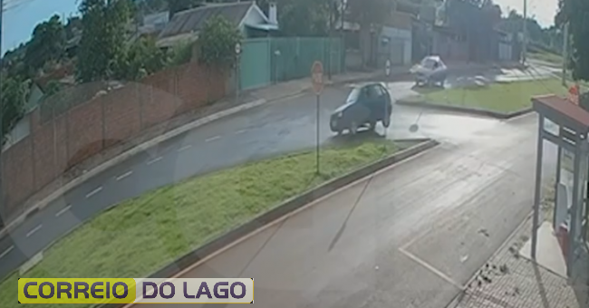 Na manhã de ontem, domingo (16), um acidente de trânsito foi registrado por uma câmera de monitoramento na Avenida Piquiri, esquina com a Rua Poente do Sol, entre os Bairros Interlagos e Brasmadeira, em Cascavel.